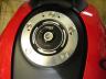 Der Zubehördeckel ALU Rizoma Original Ducati hat diese  Bohrungen  zwar aber ich würde ungerne auf das Originaltankschloss verzichten und zum Öffnen hätte man immer zusätzlich diesen Knebel am Schlüsselbund .